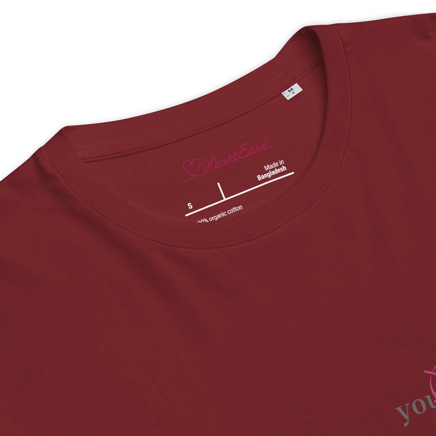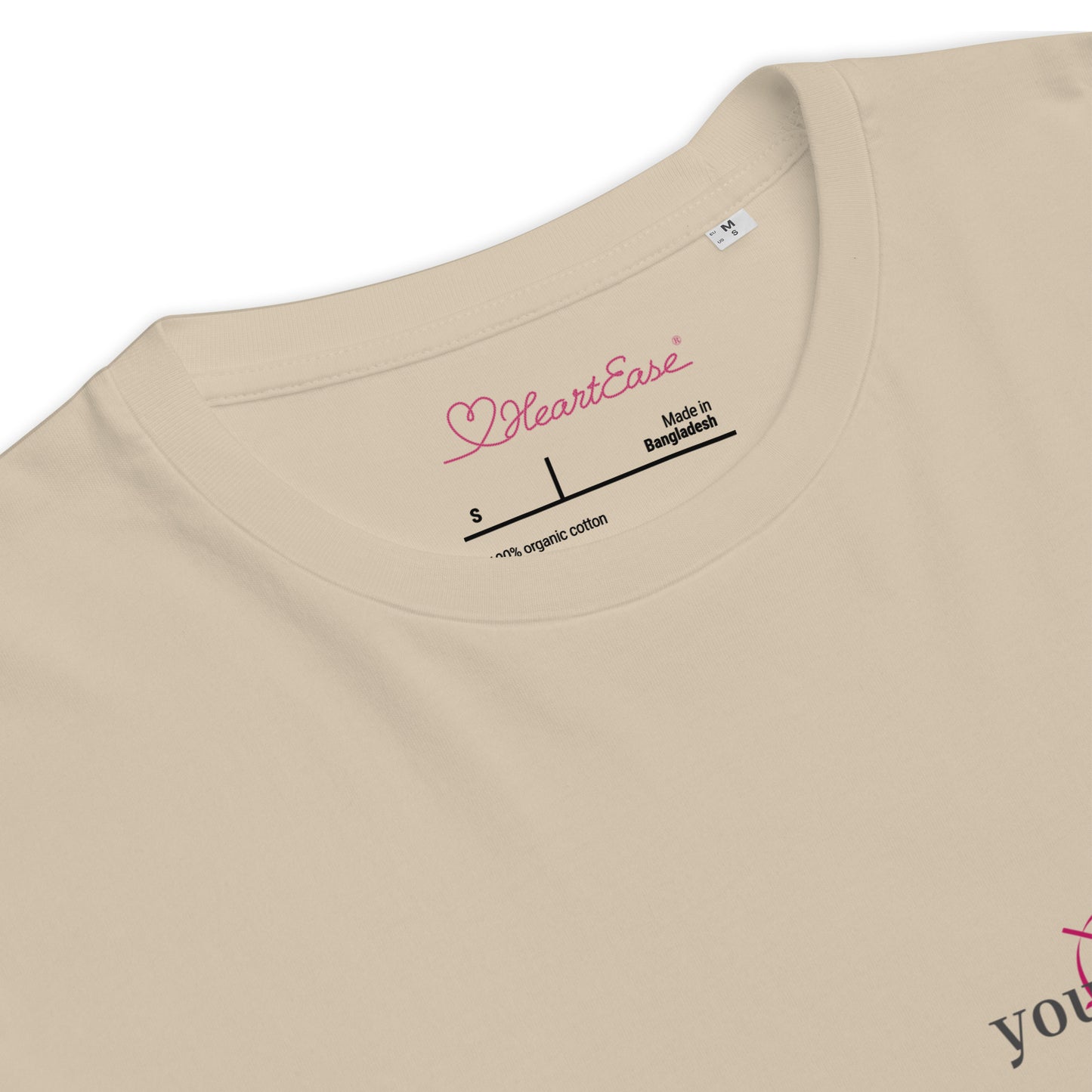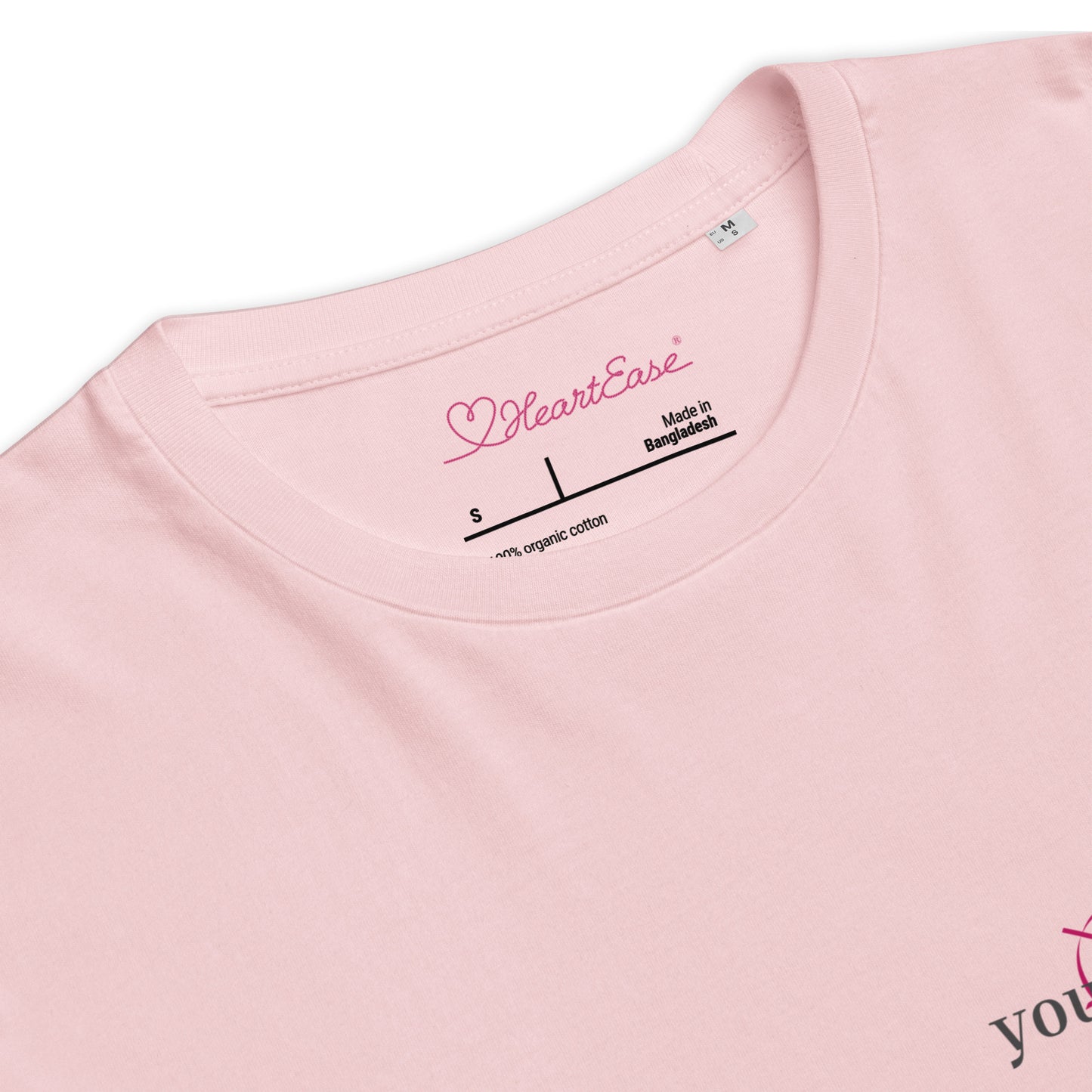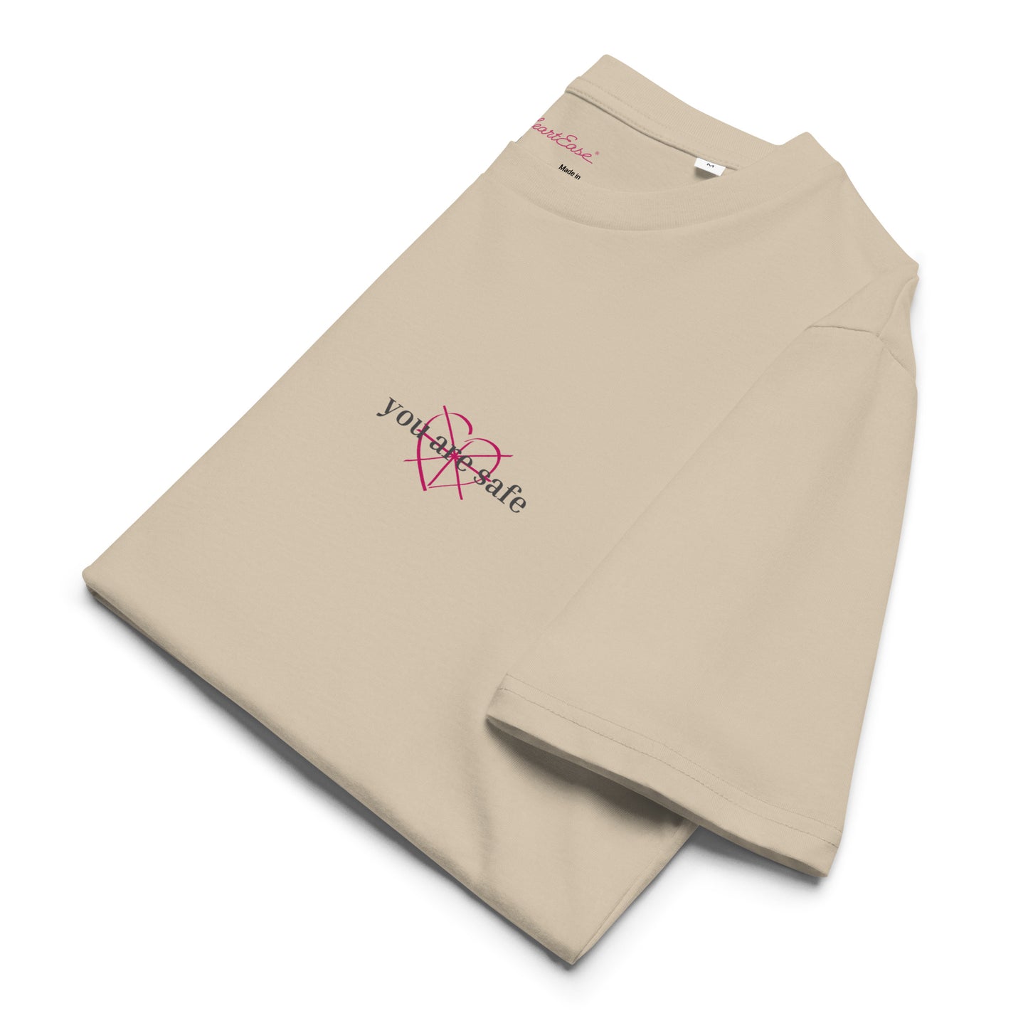 On the left chest is the HeartEase® healing heart with the words "you are safe".