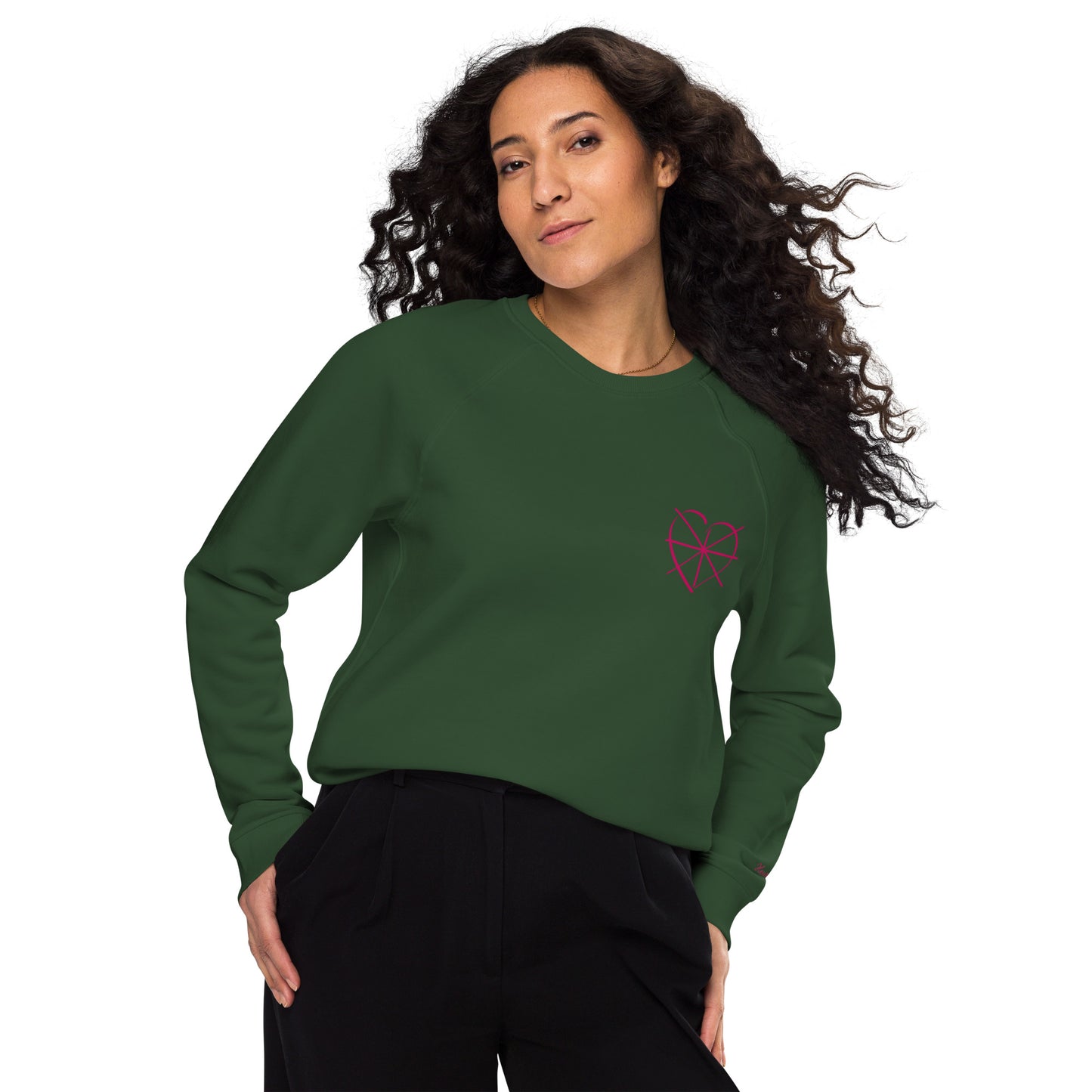 Sudadera raglán - Corazón 'Healing' (parte delantera; orgánica, unisex)