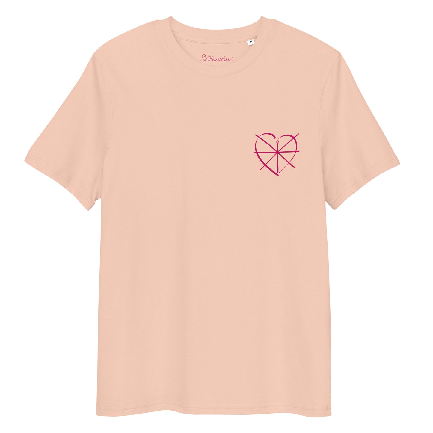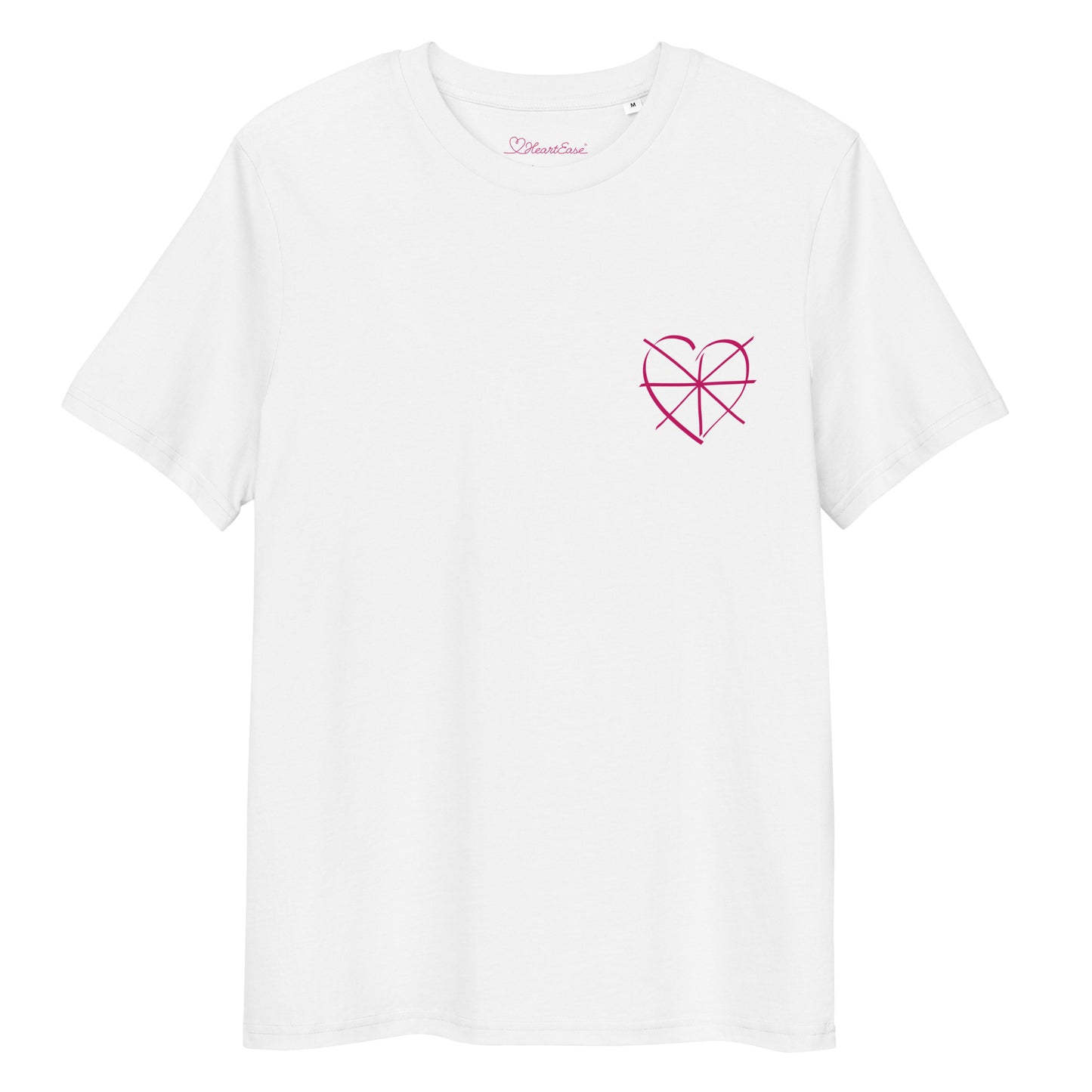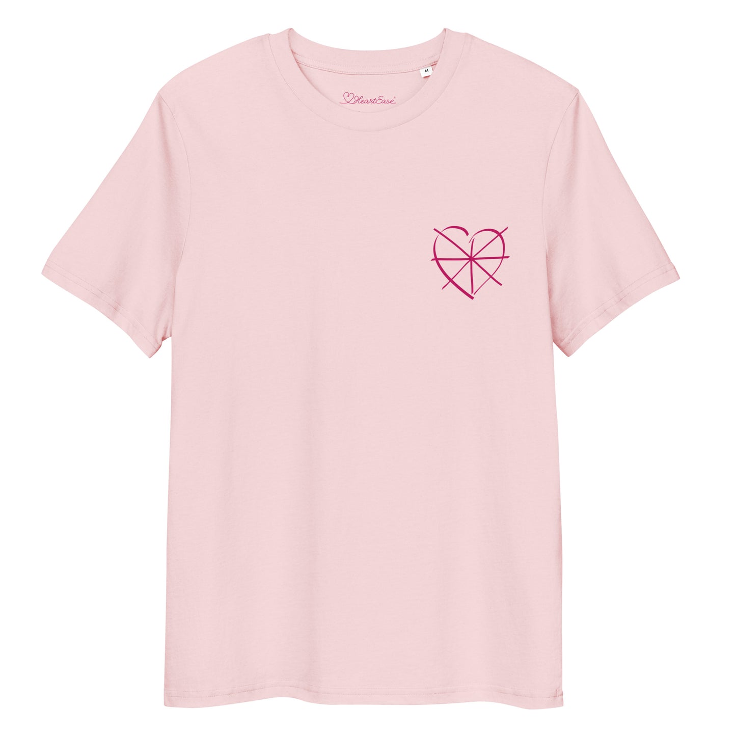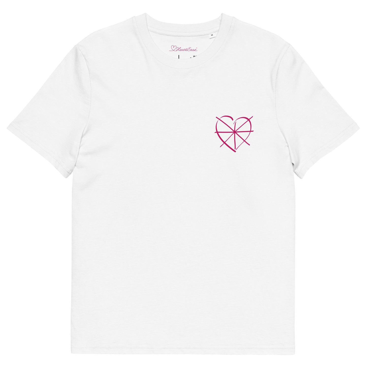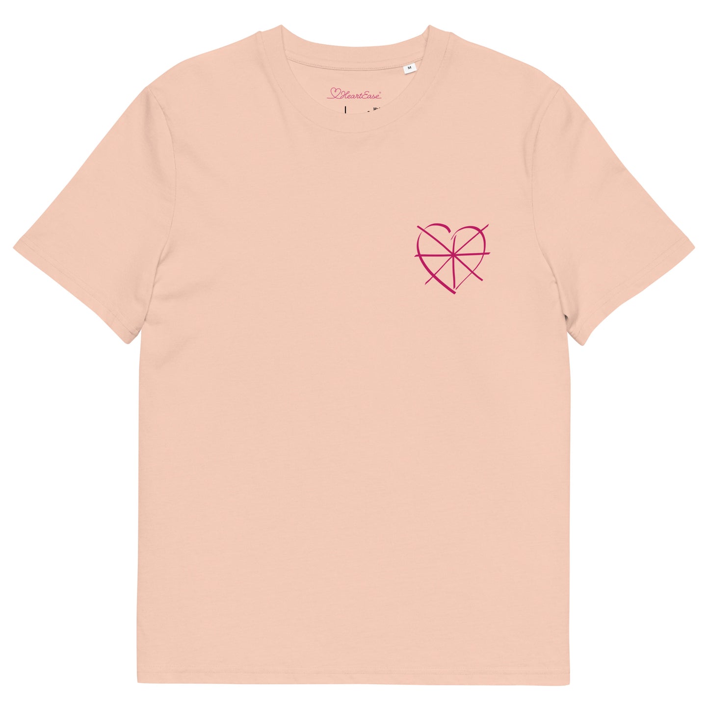 Esta camiseta unisex 100% algodón orgánico hilado en anillos que presenta el símbolo de curación HeartEase® es imprescindible. Es de alta calidad, súper cómodo y lo mejor de todo: ecológico.