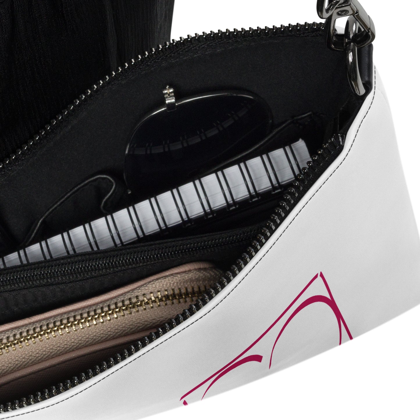 Este versátil bolso de hombro te permite tener las manos libres y muestra estilo con el corazón protector HeartEase® impreso en ambos lados. Está hecho de cuero sintético de alta calidad y presenta accesorios de color gris oscuro. Gracias a la cremallera y a los numerosos bolsillos interiores, podrás mantener tus objetos de valor seguros y organizados. El bolso de hombro con correa de muñeca y de hombro extraíbles es ideal para cualquier ocasión.