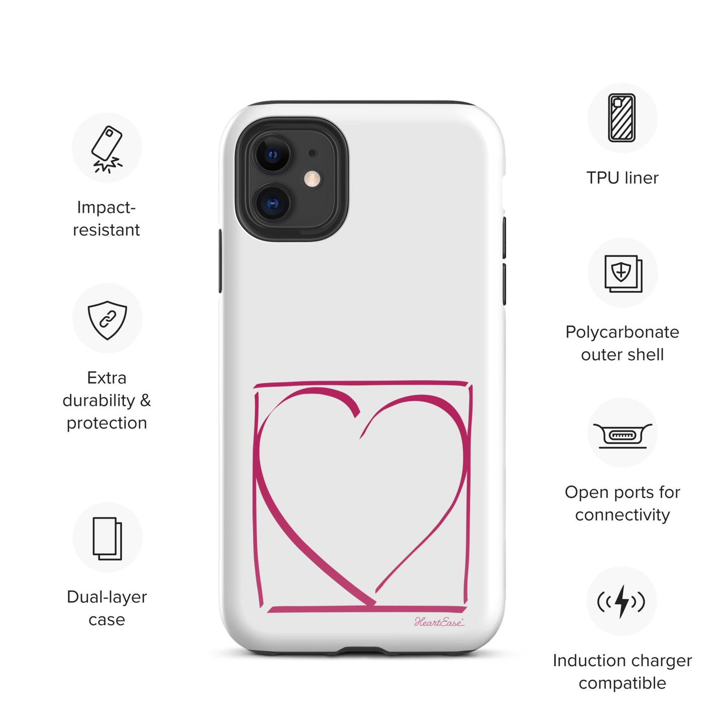 Schütze dich mit dem HeartEase® Schutz-Symbol, und zugleich dein Handy im stilvollen weiß mit einer strapazierfähigen, zweischichtigen Hülle. Die Außenschale besteht aus schlagfestem Polycarbonat, während das Innenfutter mit TPU-Futter für maximale Stoßdämpfung ausgestattet ist. Halte dein Handy das ganze Jahr über modisch und sicher!