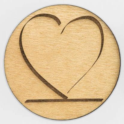 Runder Holzuntersetzer mit lasergraviertem HeartEase® Heilungs-Symbol.