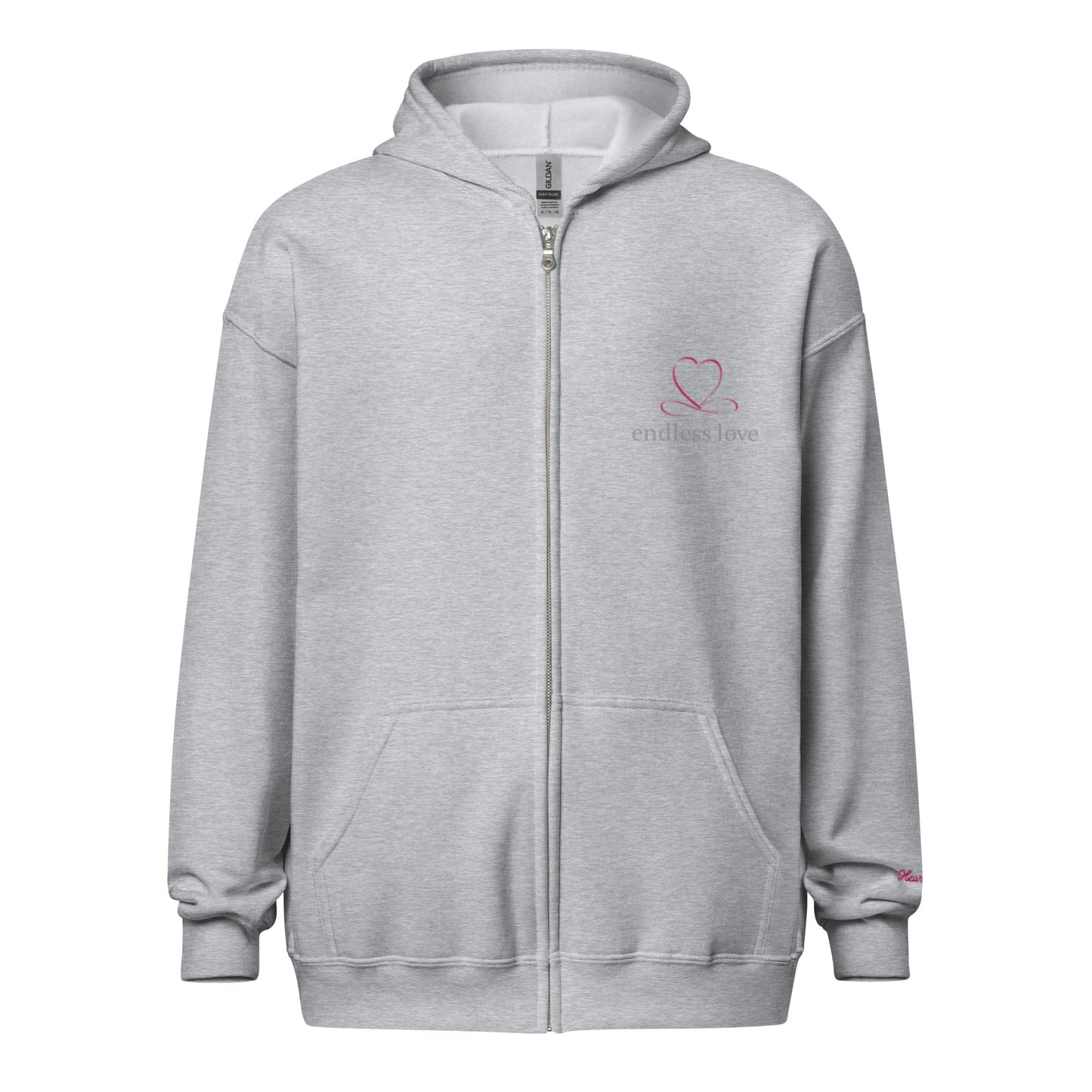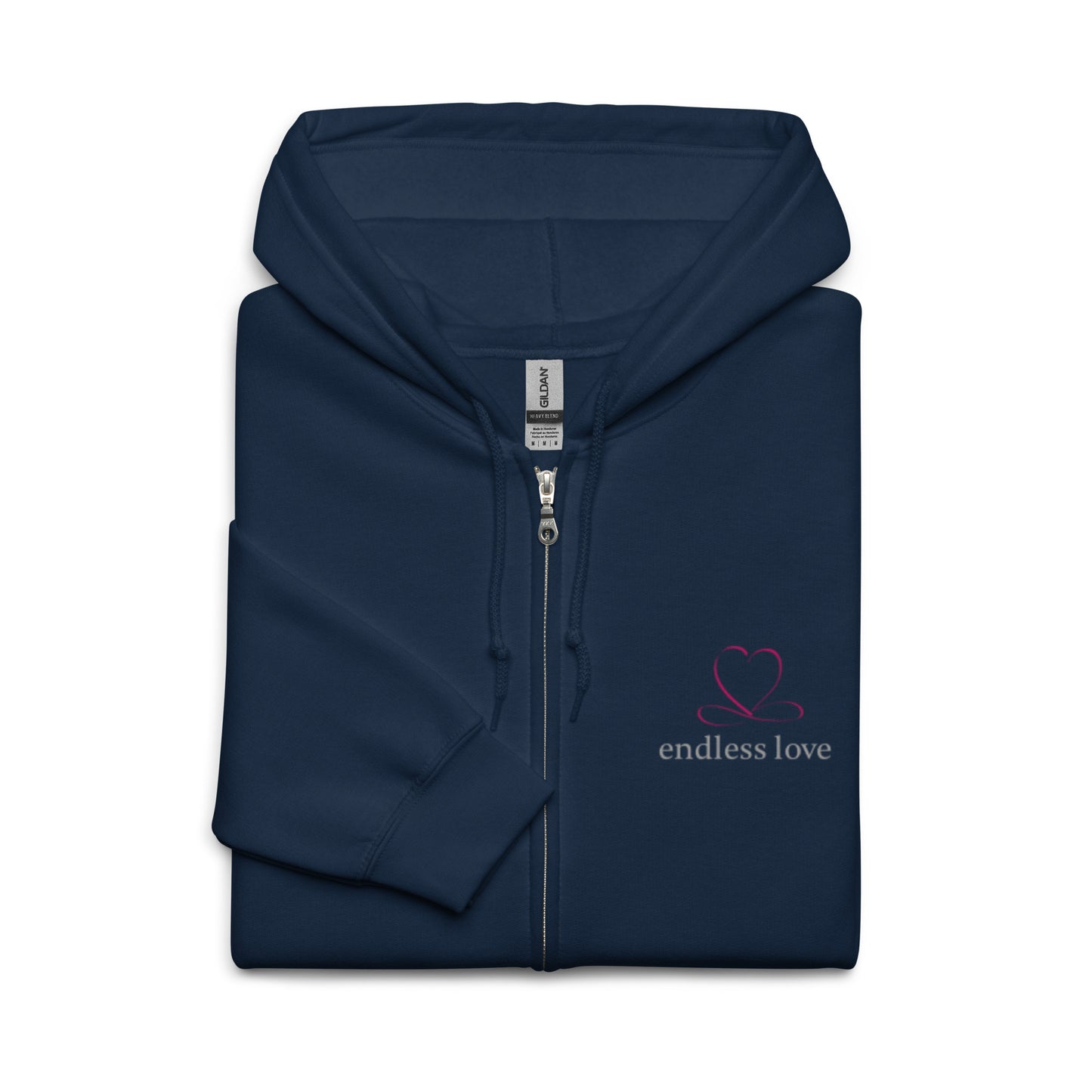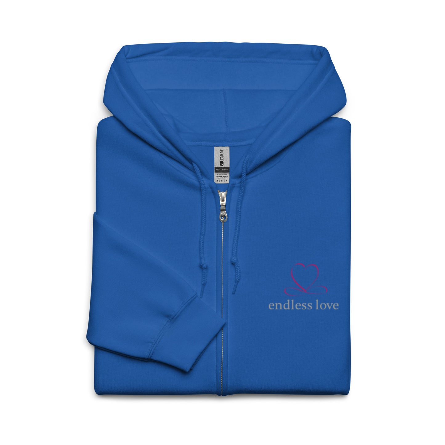 Zip Hoodie, Blaupause - endless love (vorne, hinten, unisex)