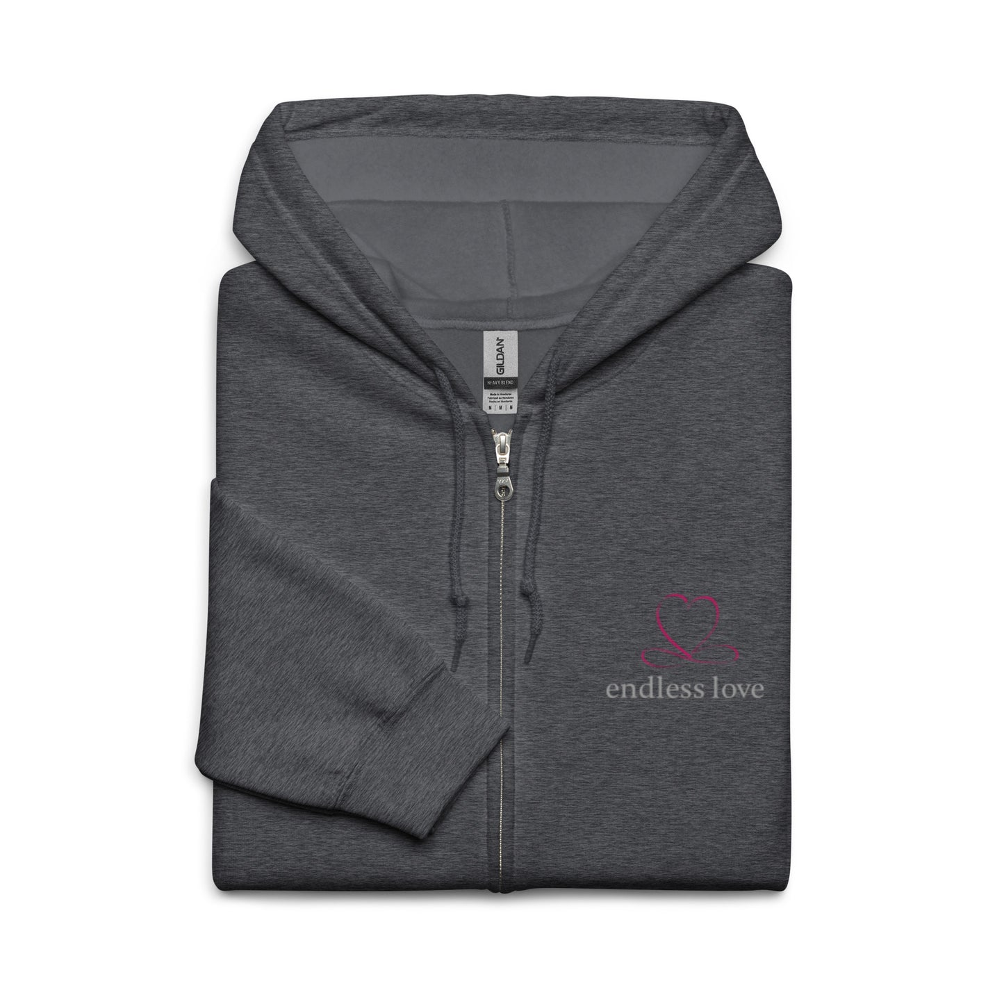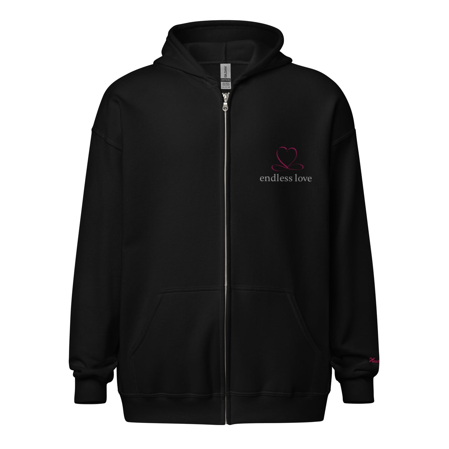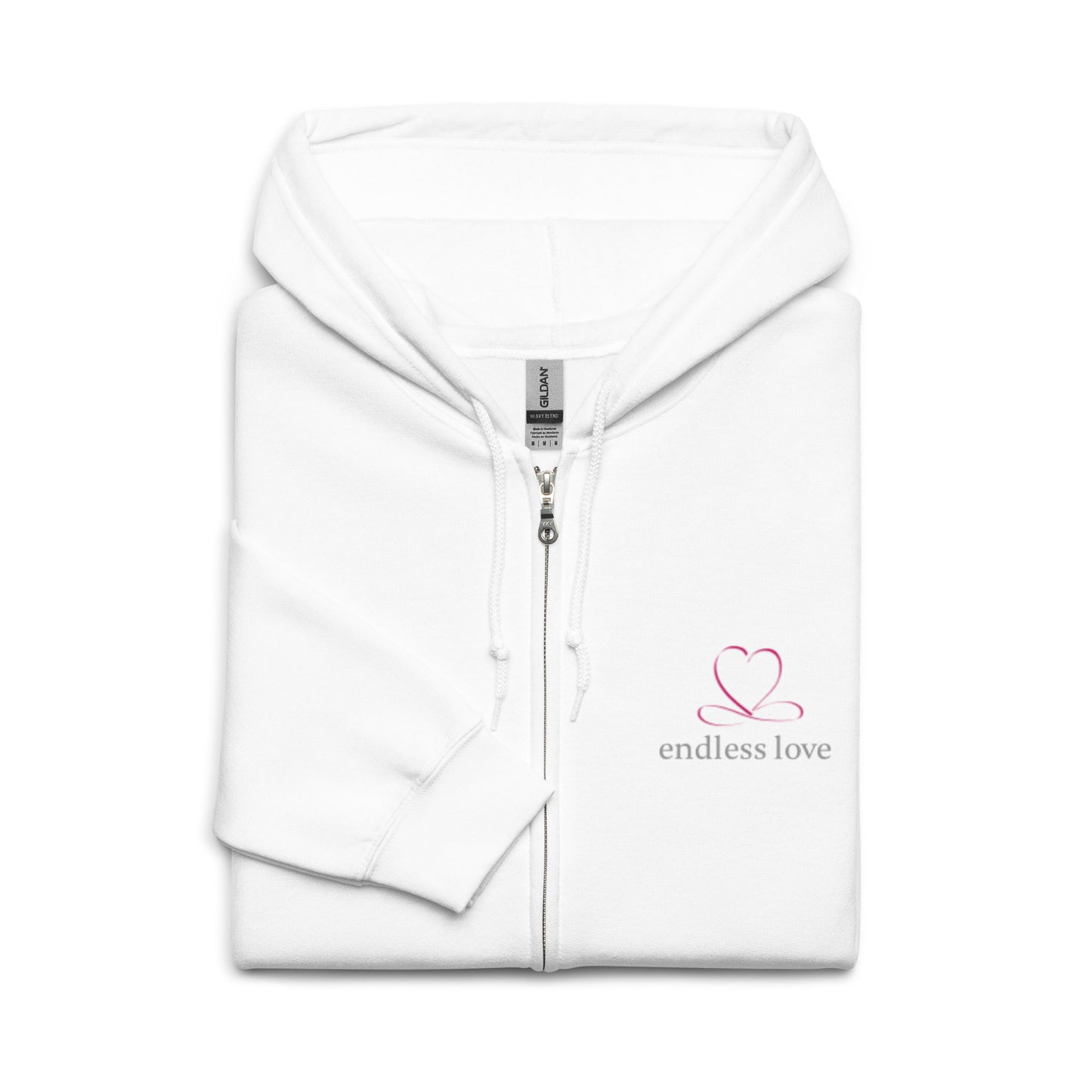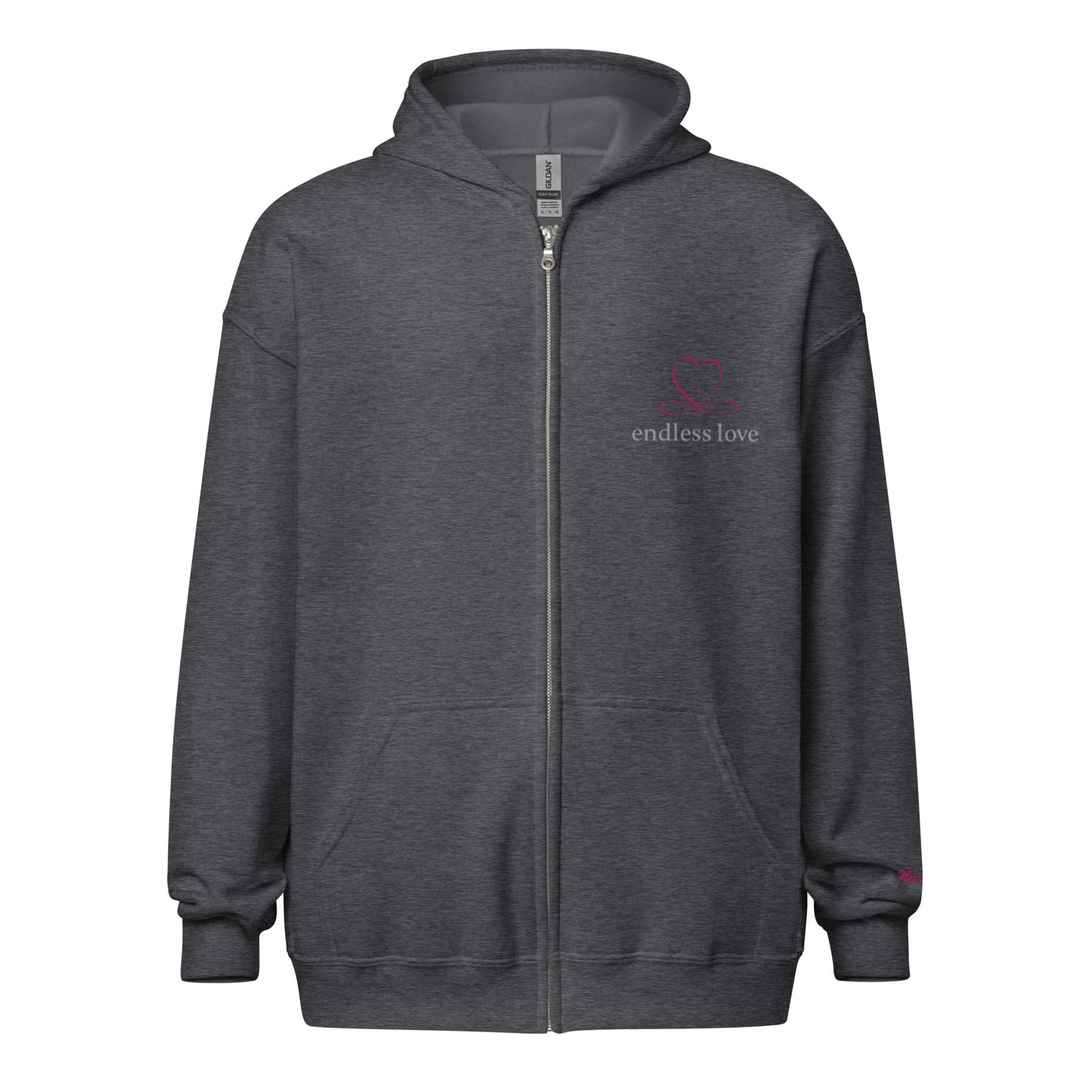 Zip Hoodie, Blaupause - endless love (vorne, hinten, unisex)